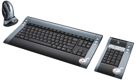 Dieses Set, bestehend aus einer Logitech MX 900, einem Flatkeyboard, einem Bluetooth Hub mit integrierter Ladestation für die Maus, einem Media Panel und den dazugehörigen Treibern, ist mit Abstand das teuerste im Test. Der Preis beläuft sich auf satte 200 Euro. Besonders an diesem Set ist, dass die Funkübertragung via Bluetooth abläuft. Dies hat den Vorteil, dass man das Media Pad in einem Radius von ca. 10 Metern benutzen kann. Doch Bluetooth hat auch Nachteile, zum Beispiel beim Spielen: Dies macht sich vor allem bei der MX 900 Maus bemerkbar, welche bei nahezu allen Egoshootern für ein unangenehmes "Ruckeln" sorgt, so dass auch die 800 dpi Abtastrate nicht gerade viel bringen.