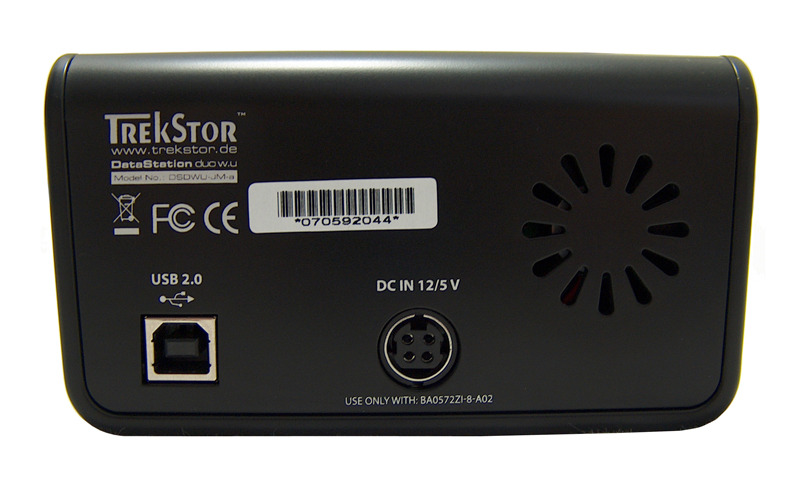 Auch bei dieser Serie kann als einzige Datenverbindung zum Computer nur auf den USB2.0-Anschluss an der Rückseite zurückgegriffen werden, neben dem sich auch der Stromanschluss für das Netzteil befindet. Anders als bei der DataStation maxi, kommt dies allerdings als zweigeteiltes, externes Netzteil mit immerhin 2,3 m Länge zum Einsatz; Anschlusskabel für andere Steckertypen als den üblichen Eurostecker werden aber keine mitgeliefert. Das USB2.0-Anschlusskabel kommt auch hier leider nur mit den fast schon üblichen 1,0 m daher.