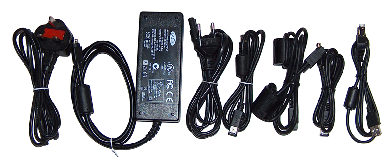Anders als bei der Hard Drive Pro von Freecom verbraucht die LaCie, egal ob ausgeschaltet oder auf Automatik, dauerhaft mindestens 3,5 Watt, während sich das Netzteil ohne Verbindung zur Festplatte generell bereits 2,3 Watt genehmigt. Die Leitungslänge des zweiteiligen Spannungsumwandlers liegt mit 3,0 m auf einem sehr guten Niveau, wobei diese Länge sowohl mit dem Stecker-Typ C (CEE 7/16, Eurostecker) als auch für den ebenfalls mitgelieferten Stecker-Typ G verfügbar ist. Letzterer ermöglicht es dem Käufer wieder, in Länder wie Großbritannien, Irland, Singapur oder Malaysia zu reisen, ohne zusätzliche Adapter für den externen Datenträger zu benötigen. Die restlichen ebenfalls zum Lieferumfang gehörenden Anschlussleitungen für USB (A-B), FireWire 800 und 400, wofür sogar zwei Kabel beigelegt wurden (eine 6 Pin- und eine 6 Pin auf 4 Pin-Ausführung), kommen leider wieder nur mit einer Länge von 1,0 m daher.