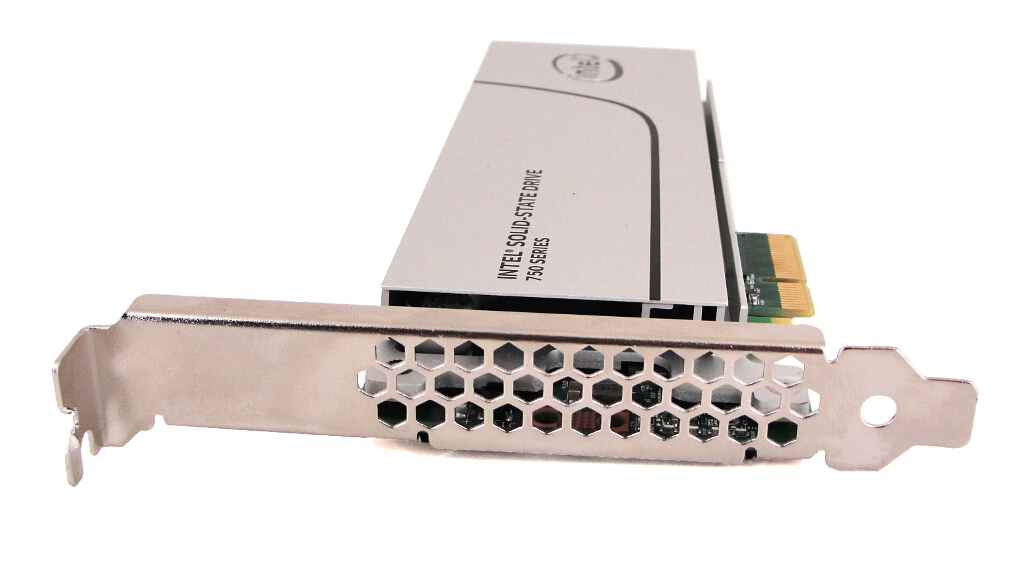 Die SSD ist in zwei Varianten erhältlich – als HHHL-Karte (Half-Height Half-Length) mit PCIe 3.0 4x und als 2,5-Zoll-Laufwerk mit U.2 connector. Die HHHL-Variante fällt durch den markanten Kühlkörper auf. Durch die Verwendung der Schnittstelle PCIe 3.0 x4 möchte man den üblichen SATA-Flaschenhals umgehen und so Mehrleistung ermöglichen. Auf dem Laufwerk werden Intels CH29AE41AB0 Controller mit 20-nm-MLC-NAND-Flash von Micron kombiniert. Durch die Unterstützung von NVMe wird ein standardisiertes Booten ohne proprietären Treiber und mehr IOPS sowie eine geringere Latenz angepriesen. Die Performance dieser Kombination werden wir ab Seite fünf ausführlich beleuchten.