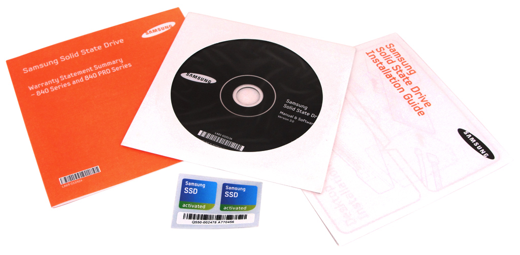 Im Lieferumfang befinden sich ein Installation Guide, Garantiehinweise, ein Samsung-Case-Badge sowie eine CD mit Handbuch und Tools (SSD Magician). Samsung bietet die Laufwerke außerdem auch als Kit an, die zusätzlich einen 3,5-Zoll-Einbaurahmen, ein SATA-Datenkabel sowie einen SATA-USB-Adapter beinhalten. Der Aufpreis hierfür liegt bei etwa 20 Euro. Alles in Allem ist die Samsung SSD 840 mit 250 GB ein klarer Fall für unseren Preis/Leistungs-Award! und eine echte Alternative zu teureren Laufwerken. Wer bereits eine SSD 830 sein Eigen nennt, muss sich über einen eventuellen Wechsel hin zur neuen Generation eigentlich keine Gedanken machen – wenn dann nur zur SSD 840 Pro.