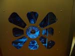 Hier kommen wir nun endlich zu der genialen blauen Kaltlicht Kathode, die oben drauf noch soundsensitiv ist. Das heist, wenn man Musik hört oder die Festplatte laut genug ist, blinkt die Kaltlicht Kathode auf, was einen wirklich genialen Effekt ergibt! Diese soundsensitiv Funktion kann man aber auch abstellen, gerade für eher ruhigere Momente wo man doch lieber nur einen schonen blau beleuchteten PC möchte. Wir haben hier noch ein kleines Video aufgenommen, in welchem sie die Kathode in Aktion sehen (Video). Da die Kaltlicht Kathode nicht das einigste Extra ist, kommen wir hier nun zum mitgelieferten Gehäuselüfter...