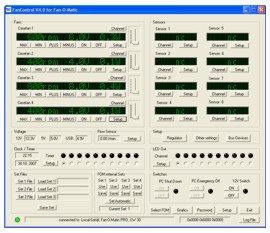 Die Fan-o-Matic Pro von Innovatek half bei der Steuerung der Lüfter. Links sind die Lüfterdrehzahlen bei maximaler Drosselung zu sehen, rechts die Drehzahlen bei 12 Volt.