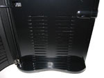 Seitlich an der Front befindet sich noch ein Schließmechanismus, welcher je nach Schlüsselstellung die gesamte Front abschließst, nur den Zugang zu den Laufwerken erlaubt oder alles öffnet. Sicherheit, welche zwar nicht vor grober Gewalt schützt aber dennoch den Besitzer beruhigt, befindet sich auch an der Seitentür, welche mit einem anderen Schlüsselsystem geschützt ist. Zudem sind zwei große Daumenschrauben für eine bessere Befestigung angebracht. Zur weiteren Ausstattung gehören zwei 120 mm Silent-Lüfter von Thermaltake, welche bei uns für sehr gute Gehäusetemperaturen sorgten und dabei nicht negativ in der Geräuschentwicklung aufgefallen sind. Auch die Verarbeitung vom Thermaltake Tsunami Midi-Tower hat einen durchweg positiven Eindruck hinterlassen. Scharfkantige oder spitze Kanten bzw. Ecken sind Thermaltake hier ein Fremdwort - alles wirkt sehr edel und hochwertig. Für einen stabilen Stand sorgen des Weiteren vier ausklappbare Standfüße.