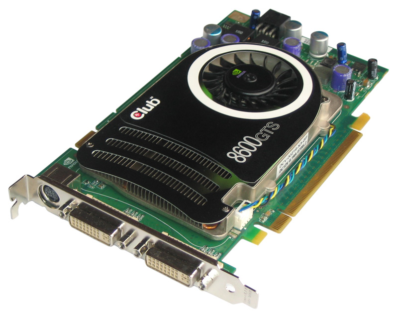 Wie erwartet basiert die Club-3D-Grafikkarte auf Nvidias G84(-400)-Grafikchip, der sich wiederum der Rechenleistung von 32 Stream-Prozessoren bedienen kann. Bei den Frequenzen hielten sich die Entwickler an die Vorgaben von Nvidia: 675 MHz Chip- bzw. 1,45 GHz Shader-Takt. Beim verbauten GDDR3-Speicher mit einem Gesamtvolumen von 256 MB handelt es sich um BGA-Chips aus dem Hause Samsung. Die RAMs mit der Seriennummer K4J52324QE-BJ1A arbeiten bei einer Versorgungsspannung von 1,9 Volt, fassen jeweils 512 Mbit, sind als 16Mx32 organisiert und verfügen über eine Zugriffszeit von 1,0 ns. Durch diese niedrige Latenz lassen sich die von Nvidia geforderten 1,0 GHz Speicherfrequenz problemlos einhalten und Club-3D hält sich genaustens an diese Vorgabe. Inwiefern sich die bis 1000 MHz spezifizierten Chips noch ein wenig beschleunigen lassen, lesen Sie ab Seite 19. Für die Ausgabe der berechneten Daten hält die Karte zwei Dual-Link-DVI-Ports und einen TV-Ausgang bereit.