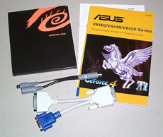 Neben der eigentlichen Grafikkarte, enthält die Verpackung der Asus V8420 noch folgende Dinge: Zwei