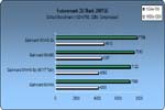 Wie man auf dem Ergebnis-Diagram von Quake III Arena erkennen kann (Angaben in Bildern pro Sekunde), lässt sich