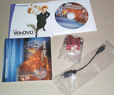 In der Verpackung der Gainward Ti4200 64 MB finden sie zwei CD-ROMs, ein kleines Handbuch, ein Kabel, ein