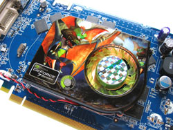 Die hier verbaute Kühlung erinnert auf den ersten Blick rein optisch sehr stark an den 7900 GT-Probanden von Nvidia, arbeitet jedoch bereits seit der ersten Platinen-Revision ohne einen Defekt der Lüftersteuerung, wenn auch nicht ganz zufriedenstellend. Nach erfolgreichem Boot-Vorgang wird der Lüfter des Kühlers bereits sehr stark gedrosselt und ist praktisch nicht wahrnehmbar. Im Windows angekommen und bei leichter Last ändert sich dies jedoch schnell und führt zu klar wahrnehmbaren Betriebsgeräuschen. Bei der Belastung durch 3D-Anwendungen dreht die Karte dann stark auf, was für uns wiederum bedeutet, dass hier deutlich zu wenig Regelstufen angesetzt wurden - teilweise volle Drehzahl ist angesichts der Temperaturen (siehe Seite 15) absolut unangemessen! Hier sollte man bei Point of View im BIOS noch etwas nach korrigieren.