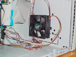 Wie man sieht (Bild rechts), haben wir den Lüfter im vorderen Bereich des Gehäuses angebracht, da an der