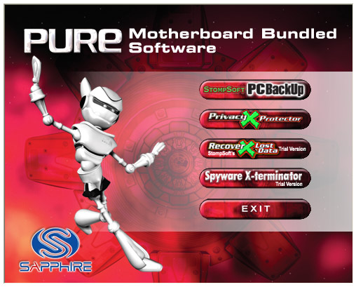 Wie der folgende Screenshot bereits deutlich macht, hat Sapphire auch passende Software zur bislang sehr gelungenen AMD 690G-Platine aus eigenem Hause beigelegt. Auf einem weiteren Datenträger befinden sich alle relevanten Treiber für aktuelle Betriebssysteme, so dass ein separater Download über diverse Herstellerseiten nicht vonnöten ist.