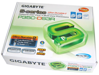 Das Gigabyte P35C-DS3R bietet eine sehr umfangreiche Ausstattung, die versucht alle wichtigen Aspekte einer kompletten Hauptplatine abzudecken. Als Highlight steht hier natürlich die Unterstützung von DDR3 an oberster Stelle. Insgesamt wurden sechs DIMM-Sockel für Arbeitsspeicher integriert, wovon vier für DDR2 und zwei für DDR3 tauglich sind. Des Weiteren will man dem Kunden noch mehr Flexibilität durch die Reinkarnation der IDE-Schnittstelle bieten. Mittels "Gigabyte SATA2"-Chip realisiert man nicht nur zwei weitere SATA2-Anschlüsse, sondern bringt auch einen IDE-Kanel für bis zu zwei Geräte an den Start. Hinter dem genannten Controller verbirgt sich der JMicron JMB363, der schon beim Asus P5B-E Plus zum Einsatz kam. Für Abrundung seitens der Speicherschnittstellen sorgt die eSATA-Erweiterung via Slotbracket.