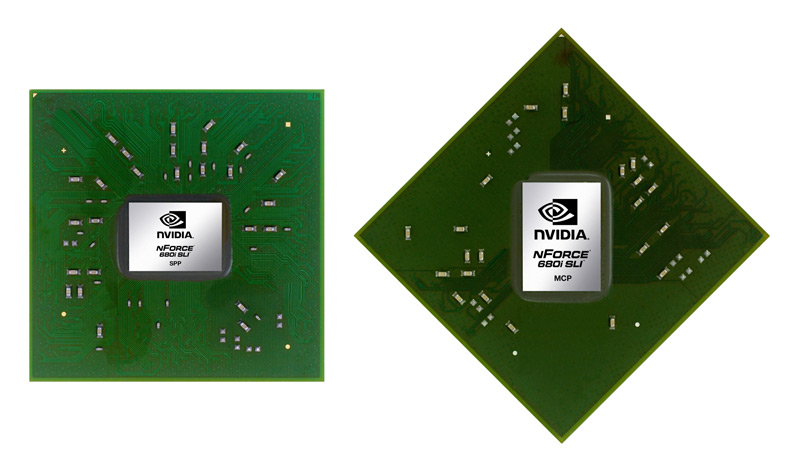nForce 680i SLI Northbridge (SPP) und Southbridge (MCP).