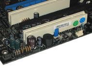 Der untere Bereich des 6-Layer-Boards beinhaltet die übrigen Funktionalitäten, zu denen beispielsweise auch die PCI- und PCI Express-Ports gehören. Hierzu sei direkt positiv angemerkt, dass EVGA einen der beiden PCI Express x1-Anschlüsse oberhalb des primären PEG positioniert hat und somit eine Erreichbarkeit unabhängig von den verbauten Grafikkarten macht. Beispiel: Bei der Installation von zwei Grafikkarten mit Dual-Slot-Kühlung fällt jeweils der darunter liegende Slot weg. Außerdem sind so auch die unteren Verschlüsse der DDR2-Module ideal zugänglich. Am unteren Ende des NF68 hält man zwei nette Gimmicks bereit, die vor allem Bastlern und Redakteuren das Herz öffnen: Praktische Reset- und Power-Buttons, sowie ein Speaker vereinfachen den Aufbau von externen Systemen außerhalb eines Gehäuses bzw. fernab von Front-Panels. Für den regulären Gehäusebetrieb, abgesehen vom Speaker, natürlich irrelevant.