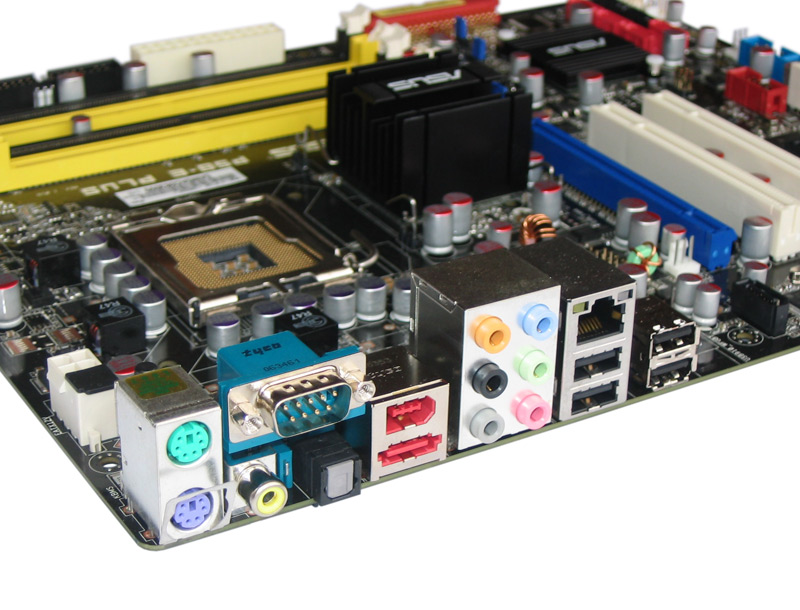 Alles am Start: Das P5B-E Plus bietet ein reichhaltiges Angebot im Back-Panel-Bereich.
