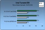 Bei Unreal Tournament 2003 (Angaben in Frames pro Sekunde) ergibt sich das selbe Bild wie bei 3D Mark