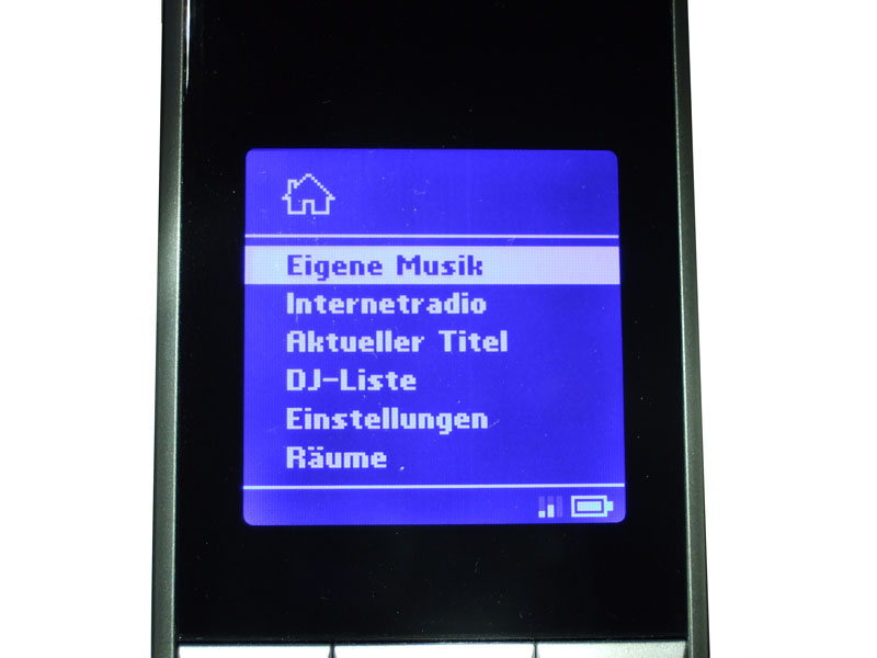 Nachdem die Musiktitel fertig katalogisiert sind, lassen sich diese auf der Fernbedienung auswählen. Durch das Display auf der Fernbedienung ist die Auswahl der jeweiligen Lieder absolut unabhängig vom Standpunkt. Ob während des Essens, auf der Couch oder beim Frühstück, die Fernbedienung kann immer dort liegen und benutzt werden, wo sie griffbereit ist. Hierbei können die Musikstücke nach Interpret, Album oder Liedtitel ausgesucht werden. Möchte man also nach einem Interpreten suchen, so stehen im Untermenu die Anfangsbuchstaben A bis Z zur Auswahl. Was sich zunächst gut anhört, lässt bei schlecht geordneten Musiksammlungen ohne ID3-Tag das Suchen zu einer echten Tortur werden. Greift man auf ein sauber geordnetes System zurück, dann lassen sich die Musikstücke zwar schnell finden, eine Suchfunktion und eine Archivierung nach Verzeichnissen vermisst man bei großen Sammlungen dennoch schmerzlich. iTunes-Nutzer können sich in dieser Hinsicht glücklich schätzen, da das Programmprinzip ebenfalls eine strenge Einordnung verlangt und die bereits bestehende Bibliothek einfach eingelesen werden kann, bleibt viel Mühe erspart. Wer sich dagegen bisher nur mit Winamp und einer einigermaßen guten Ordnerstruktur zurechtgefunden hat, dem wird die unumgängliche Arbeit abverlangt, in seiner Musiksammlung Ordnung zu schaffen.