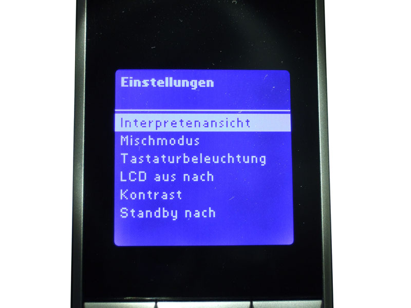 Hat man diese Hürde überwunden und eine korrekte Einordnung bewirkt, so lassen sich gewünschte Lieder auch wiederfinden und per Tastendruck in eine DJ-Liste aufnehmen. Mit dieser Funktion kann man sich dann seine ganz persönliche Zusammenstellung, ähnlich einer Winamp-Playlist, abspeichern. Und diese braucht man auch, denn möchte man das Lied Y von Interpret X und darauf hin Lied X von Interpret Z hinzufügen, so geht die Scrollerei am Menürad los. Das Zusammenstellen einer DJ-Liste ist also keinesfalls in einigen Sekunden geschehen. Zwar gibt es neben der DJ-Funktion auch die Möglichkeit ganze Alben oder die gesamten Werke des jeweiligen Interpreten der Reihe nach, oder in gemischter Folge abzuspielen, doch wirkt die Steuerung trotzdem ein wenig unausgereift und umständlich. Da sie alle Inhalte auf recht kompakten Raum vereint, macht das Konzept, trotz der Schwachstellen im Umgang mit unsortierten Musiksammlungen, einen guten Eindruck. Zumindest wenn es um das Abspielen ganzer Alben und nicht wild gemischter Titel geht. Hierbei überzeugt dann auch die vollkommen portable Lösung.