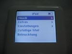 Das in der Diagonale 5,08 cm große Display verfügt über eine blaue LED-Hintergrundbeleuchtung und besitzt 160 x 128 Pixel. Damit stellt es Schrift- und andere Grafikzeicher sehr sauber und weich dar. Der Kontrast vom Display kann natürlich eingestellt werden. Im Gegensatz zum Display ist das Click Wheel allerdings nicht beleuchtet, was unserer Meinung nach aber sinnvoll gewesen wäre. Sicherlich ist die Bedienung für eingefleischte iPod User auch im Dunkeln ein kinderspiel, Anfänger müssten das ganze aber sicher noch erstmal ins rechte Licht rücken.
