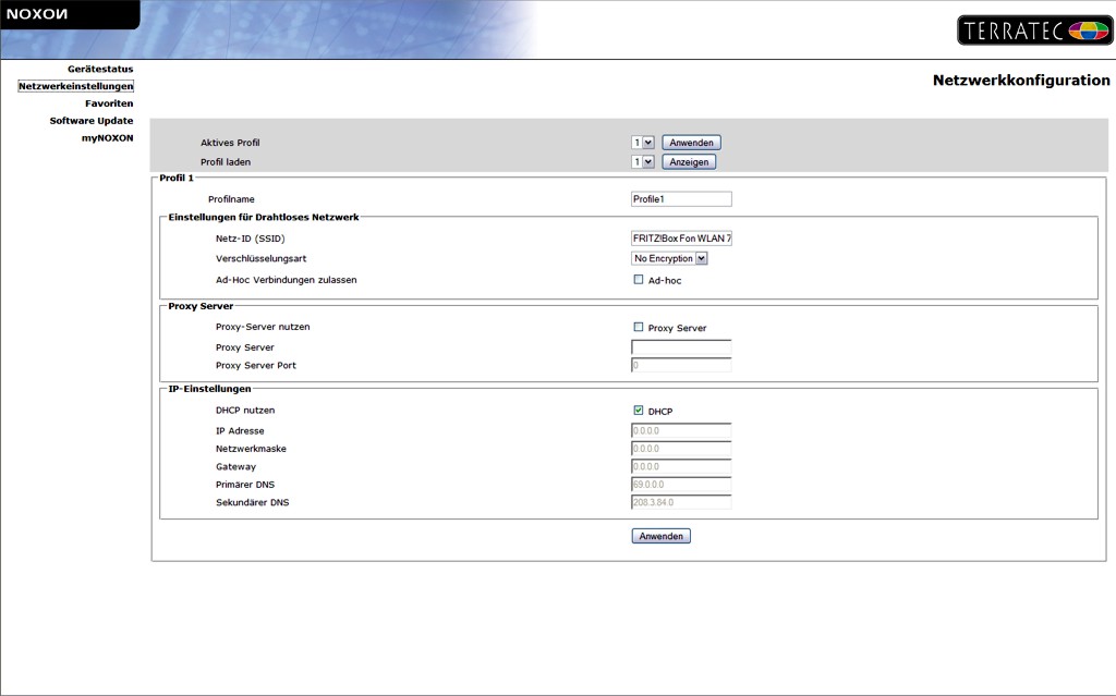Damit der Zugriff des NOXON auf den Rechner überhaupt möglich ist, muss natürlich sichergestellt sein, dass das Gerät im Netzwerk erkannt worden ist. Man kann das entweder mit einem Blick in die Konfigurationstabelle des Routers feststellen oder man lässt sich unter Windows XP die vorhandenen UPnP-Geräte anzeigen. Wenn das NOXON im Netzwerk erkannt worden ist, wird es dort auch angezeigt. Zweitens darf der freizugebende Ordner nicht gesperrt sein. Nun wird die mitgelieferte Software namens TwonkyMedia installiert, die einen virtuellen Medienserver auf dem Rechner einrichtet. Auch hier muss man allerdings ein wenig achtgeben: Mitgeliefert wird zum iRadio Cube derzeit die TwonkyMedia-Version 4.4.5. Ein Upgrade auf eine neuere Software-Version funktioniert nur bis zur Versionsnummer 4.4.11. Der mitgelieferte Key ist mit der Version 5.x nicht mehr kompatibel. Möchte man hier also unbedingt eine neuere Software der TwonkyMedia-Serie nutzen, muss man diese separat kaufen. Ob eine andere Server-Software ebenso ihren Dienst tun würde, haben wir allerdings nicht ausprobiert.