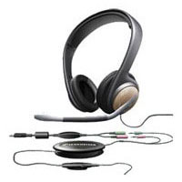 Das teuerste Headset im Test stellt das Sennheiser PC 155 USB dar, welches aber auch ein Produkt der Extraklasse ist, denn es ist immerhin das beste Pferd im Stall Sennheiser. Es soll ideal für PC-Spiele, Musik, DVDs und auch den MP3-Player geeignet sein. Schon vom äußerlichen sticht das PC 155 USB durch sein elegantes und edles Design hervor, Sennheiser-typisch eben. Natürlich ist auch für die komfortable Lautstärkereglung eine Kabelfernbedienung vorhanden. Das Mikrofon ist ebenfalls sehr schmal gehalten und ist mit "Noise Cancelling" (Rauschunterdrückung) ausgestattet. Auch an einen Kabelaufroller wurde gedacht, damit Ordnung am Platze herrscht. Die ohrenumschließenden Ohrpolster aus Plüsch sollen längere Tragezeiten zudem so angenehm wie möglich gestalten. Der Anschluss an den PC kann wahlweise per USB-Anschluss oder 3,5 mm Klinke erfolgen, was natürlich eine Soundkarte voraussetzt.
