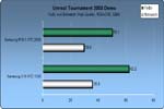 Bei Unreal Tournament 2003 (Angaben in Bildern pro Sekunde) kann das Samsung X10 eindeutig bessere Leistung