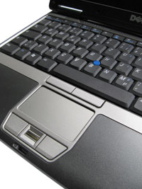 Ähnlich wie IBM verwendet auch Dell einenTrackPoint, der die schnelle Steuerung des Maus Cursors erlaubt. Unmittelbar oberhalb des Touchpads sind zwei weitere Tasten integriert, die (sofern der Anwender gerade den Track Point verwendet) mit dem Daumen bedient werden können (siehe Bild). Die Funktionstasten lassen sich ebenfalls gut erreichen; Zusatztasten wie Bild-Auf/Ab finden sich unterhalb der Enter-Taste auf der rechten Seite.