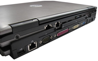 Die Auswahl an verfügbaren Schnittstellen beim D420 ist insgesamt zufriedenstellend, allerdings wäre eine Bluetooth Funktionalität wünschenswert gewesen. (der Aufpreis für Bluetooth beträgt derzeit etwa 80 Euro). Neben 3 USB 2.0 Ports finden sich Ports für Modem, Gigabit-Ethernet, Firewire, Audio sowie ein VGA-Port. Wer mehr als 3 USB- oder eine DVI-Schnittstelle benötigt, kann zu einer Docking Station greifen, die über solche Schnittstellen in ausreichender Anzahl verfügt. Bei unserem Modell waren sogar noch ein LPT- und ein COM-Port mit dabei.