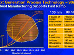 Der Prescott wird in einem 90 nm Herstellungsprozess gefertigt, hierdurch können mehr Transistoren auf einem Wafer erstellt werden, die Transistoren sind nebenbei schneller und benötigen weniger Platz. Dadurch kann Intel den Prescott auch mit 125 Millionen Tranistoren versehen und dabei den Platzverbrauch, im Vergleich zum Northwood-Kern mit lediglich 55 Millionen Transistoren und 131 mm², die DIE-Oberfläche auf 112 mm² senken.