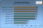 Vorne liegen die Extreme Editions mit 2 MB L3 Cache. Sandra ist allerdings ein künstlicher Benchmark und zeigt