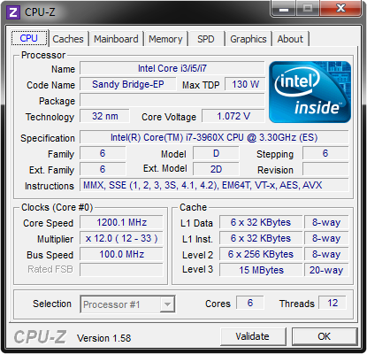 | Core i7-3960X | 6 | √ | 3,30 GHz | 15 MB | 130 W | - | - | √ | 880 Euro |