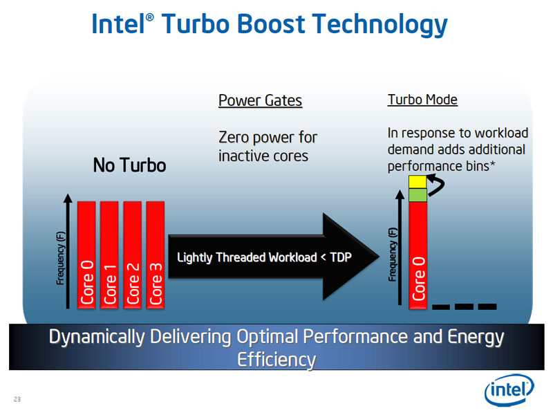 Der Turbo Modus ist eine Errungenschaft der i7-Familie. Hierbei handelt es sich um eine lastbedingte Multiplikatorerhöhung: Nutzt eine Anwendung nur einen Kern diesen aber unter voller Last so kann der Turbomodus diesen Kern übertakten, soweit es die CPU-Spezifikationen zulassen. Das heißt, die TDP darf nicht überschritten werden und die Temperatur muss im Rahmen bleiben, so dass der Prozessor keine bleibenden Schäden nimmt.