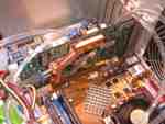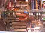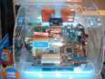 Neben den bereits bekannten Leistungen der neuen NV30 Platinen, suchten wir auch nach lauffähigen GeForce FX 5200 oder 5600 Systemen, doch leider vergeblich. Daher richteten wir uns Hauptaugenmerk auf die verschiedenen Kühlungen der NV30-Platinen. Sehr interessant waren hier die Stände von Gainward, TerraTec, Leadtek und Thermaltake, wobei man die Gainward-Karte mit Wasserkühlung nur im Hinterzimmerchen gezeigt bekam (Bilder unten). Thermaltake setzte wie gewohnt auf seine Heatpipe-Lösung, die offensichtlich auch den NV30 bei Laune halten soll. Ein laufendes System mit der neuen Thermaltake-Kühlung konnten wir leider nirgends finden. Folgend nun ein paar Impressionen der verschiedenen GeForce FX Platinen...