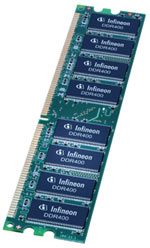 In der internationalen Halbleiterindustrie hat sich Infineon schon einen der besten Plätze gesichert und konnte auch für unser Gewinnspiel etwas entbehren - deshalb noch ein Dankeschön an dieser Stelle. Anbieten können wir ein 1 GB Speicherkit, bestehend aus zwei 512 MB DDR400 Speichermodulen von Hersteller Infineon. Die herkömmlichen Unbuffered Riegel ermöglichen Taktraten von bis zu 200 MHz und sind auch einem Overclocking gegenüber nicht abgeneigt. Auch die SPD-Timings von 3.0-3-3-8 lassen sich in der Praxis noch weiter steigern - tCL 2.5. Wer Infineon-Speicher kennt, weiß ihr hohes Potential, ihre große Stabilität und ihre kompromisslose Kompatibilität zu schätzen!