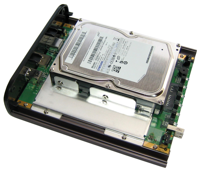 QNAP TS-109 von innen: Platz für eine 3,5 Zoll Festplatte.