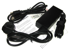 Öffenen wir die Verpackung des Mini-PCs, finden wir eine Reihe von Zubehör vor. Neben einem externen Netzteil für die Versorgung des Geräts, legt Giada ein HDMI-Kabel und eine kurze WiFi-Antenne bei. Für eine bequeme und praktische Bedienung des Mini-PCs wird eine Fernbedienung mitgeliefert – leider fehlen die notwendigen Batterien (2x AAA) mit im Karton. Damit kann der Media-PC eingeschaltet werden und es können über das in Windows 7 integrierte Media-Center alle Inhalte gesteuert und wiedergegeben werden. Eben jenes Windows 7 ist als 64 Bit Professional Version bereits vorinstalliert, so dass der Giada-Mini-PC direkt einsatzfähig ist. Folgend der gesamte Lieferumfang unseres Testprobanden im Überblick: